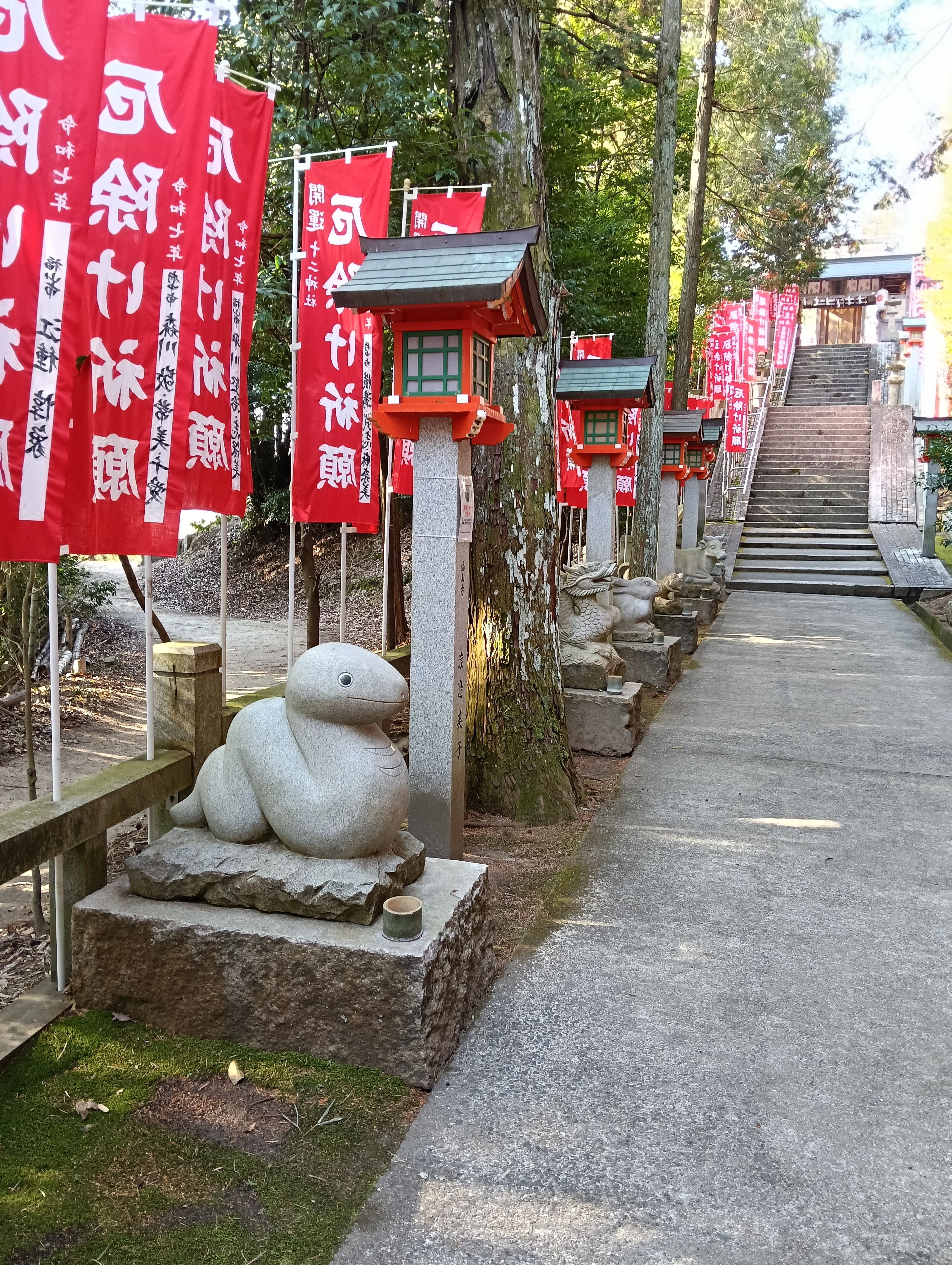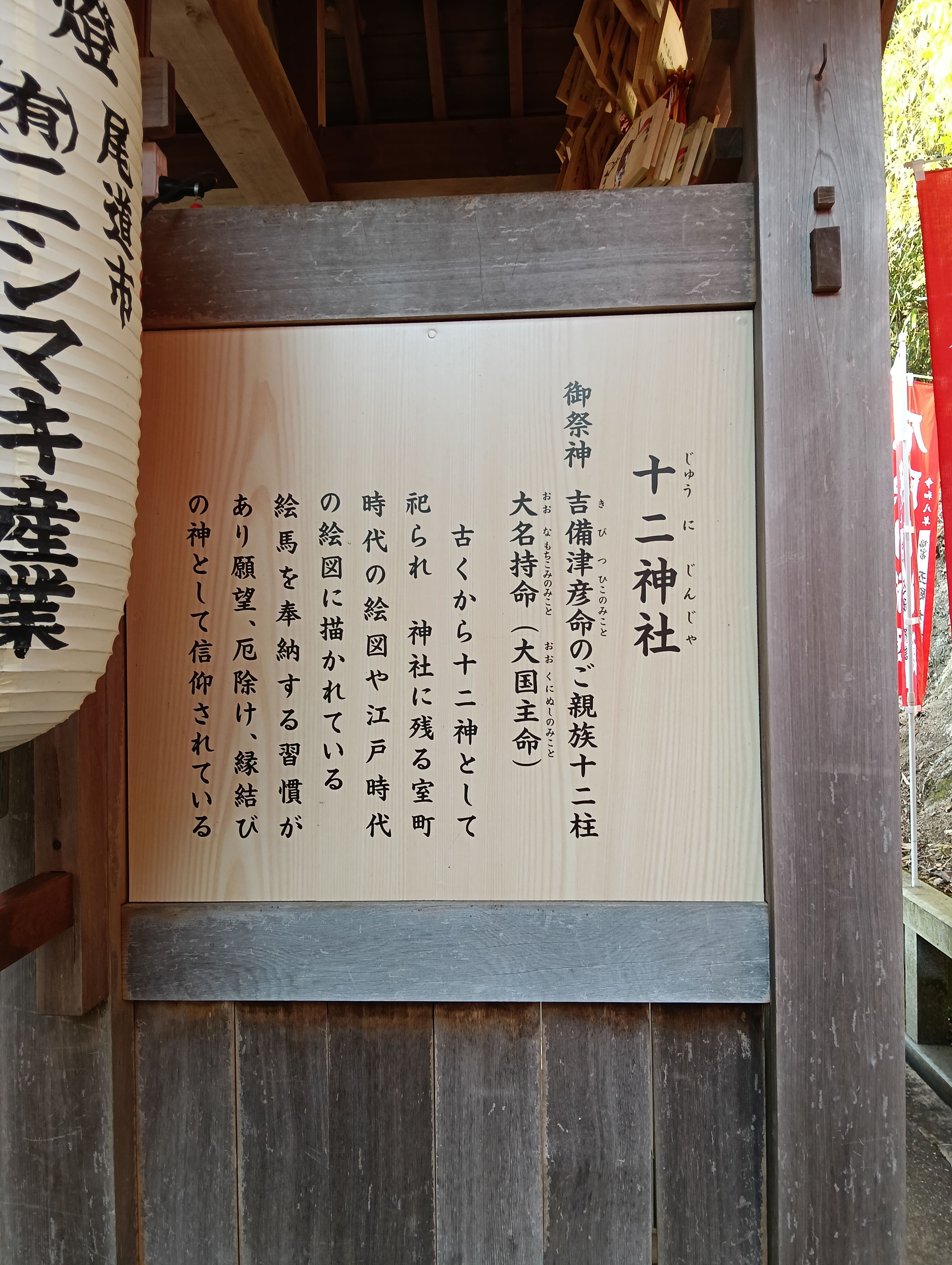 12干支と桃太郎の像を通った後、十二神社でお参り。